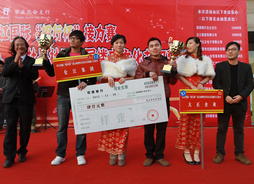 2012年12月6日,我公司8名运动员参加长江国际大型楼宇活动-长江国际“招行杯”接力赛,本次比赛共有25家企业,32支运动队参加。比赛历时一天,我公司全体员工都以饱满的热情投入到这次比赛中。赛前运动员们在工作之余积极组织训练,赛场上运动员们努力拼搏。我公司男子组四名运动员:沈晓东、邵健、刘慧敏、刘传凯四位运动在本次比赛中夺得第二名,为公司夺得荣誉。在比赛中,AG恒峰看到运动员们的通力合作,坚持不懈的精神,同事之间相互照顾鼎立扶持的情谊,充分体现出了AG恒峰公司积极向上的团队精神。